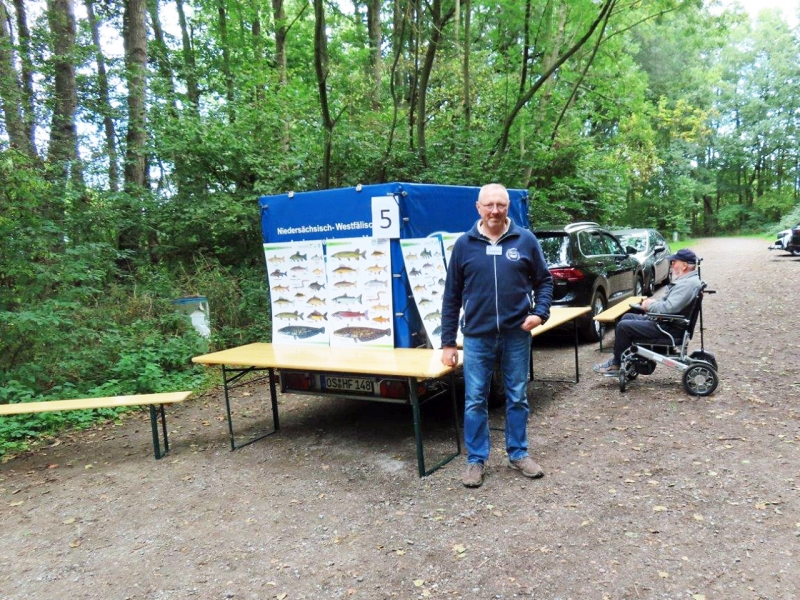 Weiter ging es am Ochsenmoorturm. Dort gab es die Gelegenheit die Soziallaute von Fledermäusen zu hören, die dort hautnah nebenan ihr Tagesquartier hatten. Weiter ging es dann am Südturm, ausgestattet mit Fernglas und Spektiv wurden die SchülerInnen zu kleinen Ornithologen und beobachteten, welche Vögel auf dem Wasser zu finden waren. Bei der Station der Niedersächsisch- Westfälischen Anglervereinigung e.V (NWA) wurde unter die Wasseroberfläche geschaut und erklärt, welche Fische im Dümmer leben.